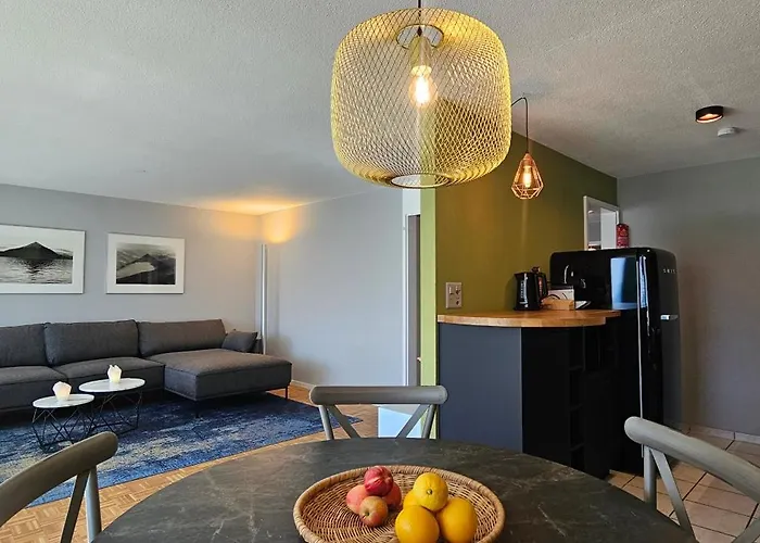 A 80 m^2-es apartmantól körülbelül 4 km-re számos turisztikai látványosság van, például az Oberhofen vára. A Thuni kastély körülbelül 15 perc sétára található.